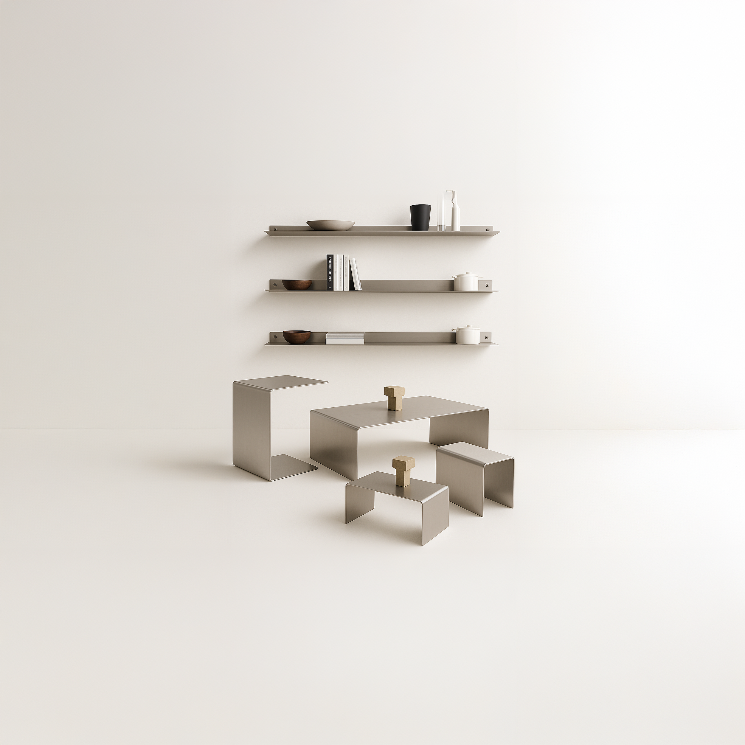Hos RÅM fokuserer vores kuraterede kollektion på borde, hylder og hjørneborde, designet til at forbedre dine opholdsrum: